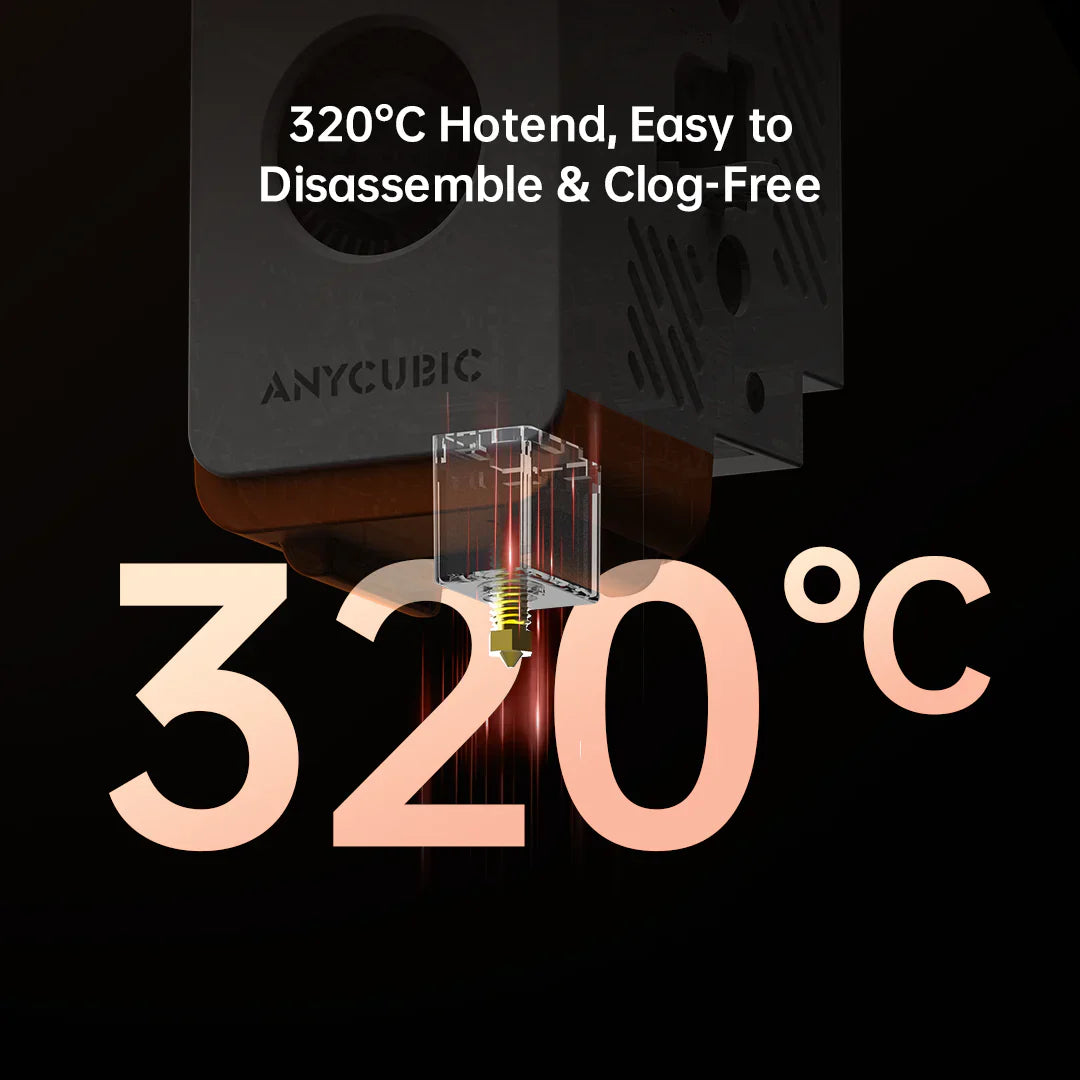 Product Features ● Fully Enclosed CoreXY Construction with a Print Size of 250*250*250mm ● Compatible with all Major Filaments ● 600mm/s Ultra-Fast Printing ● 44dB Quiet Print Mode ● 320℃ Hotend, Easy to Disassemble, Anti-Clogging ● Anycubic Slicer Next & Anycubic App Upgrade